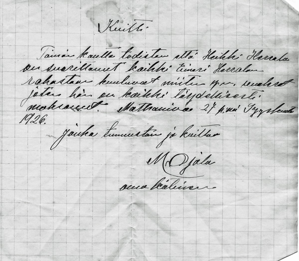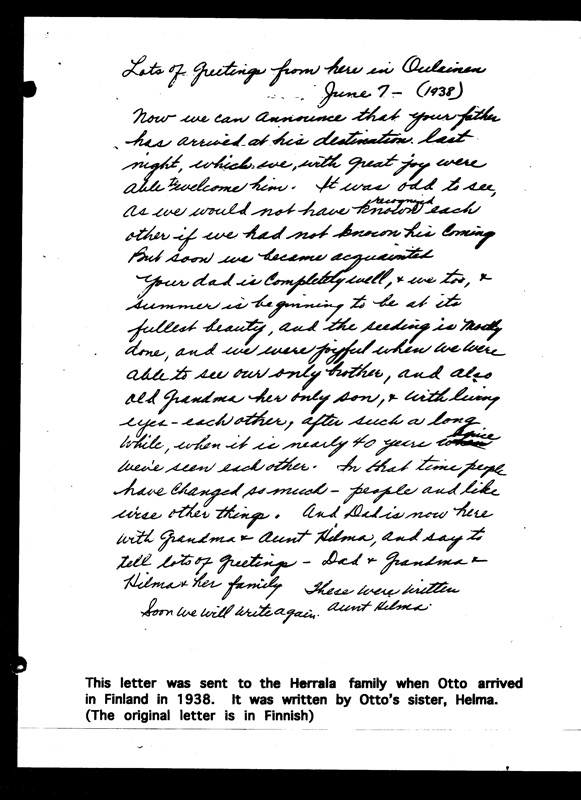 ![]() Typed for clearity This was in the local paper after Otto returned from Finland. Dated 1940 |