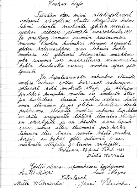 ![]() Pieta Herrala's rental agreement for three cows. English Transtlation |